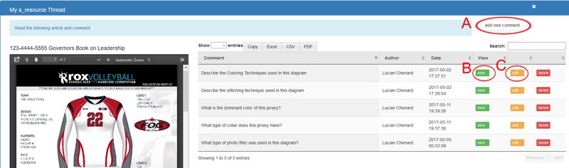 B: Locate the tread you want to edit and then click on the GREED "view" button.