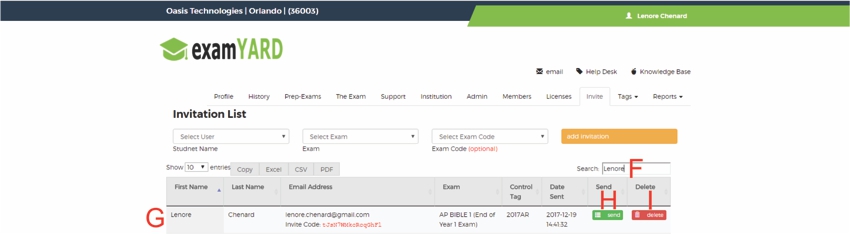 *See "Sending Exam Invitations" for more help