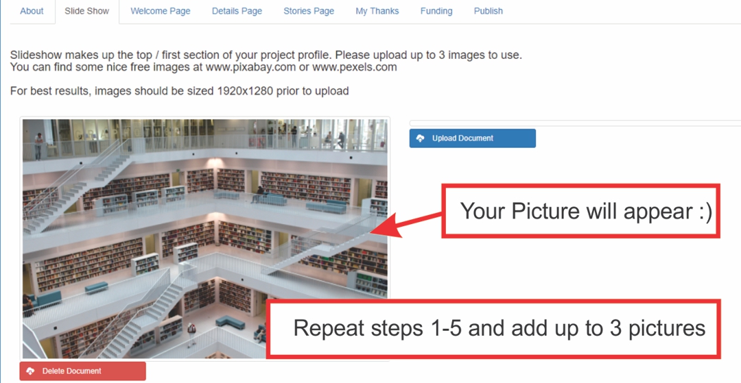 When a user first opens your Project URL they will see a 1-3 picture slide show of your choosing.